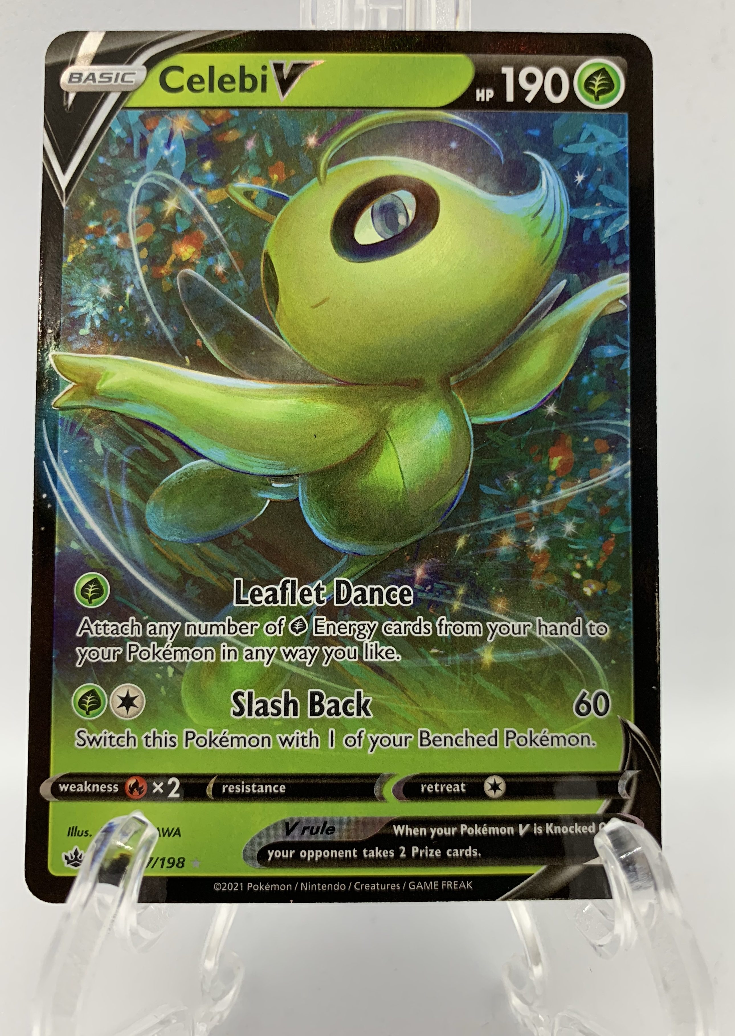 Though my photography doesn’t do it justice, Celebi’s iris is made with holo foil, which is a nice detail!