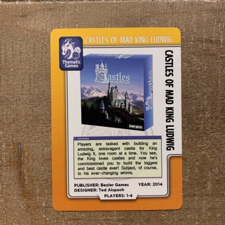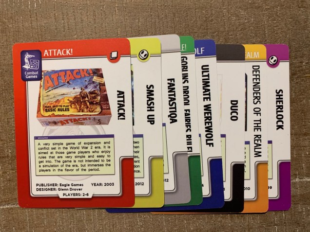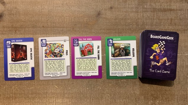 Board Game Geek: The Card Game tasks players with playing games and building their collections. Every card in the game represents a real-life board game. I appreciate how every game includes a box shot and description, as it doubles as a way of discovering new games to buy and play in real life.