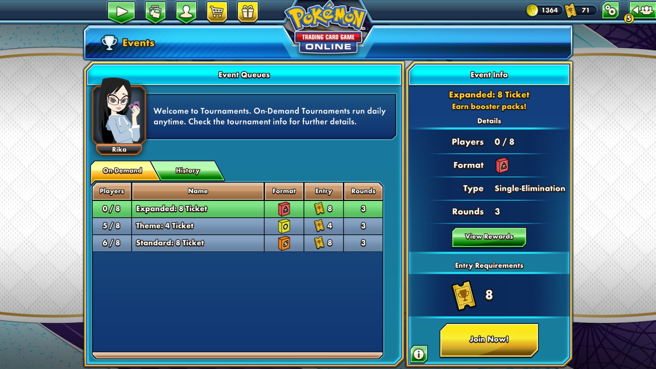 If you’ve got a spare 30 minutes or so, you can use your Event tickets to join an 8-player single-elimination tournament. Tournaments give players the opportunity to earn even more rewards, such as coins and booster packs. These pay out even better than standard versus matches, though participation is limited by the number of tickets you have.
