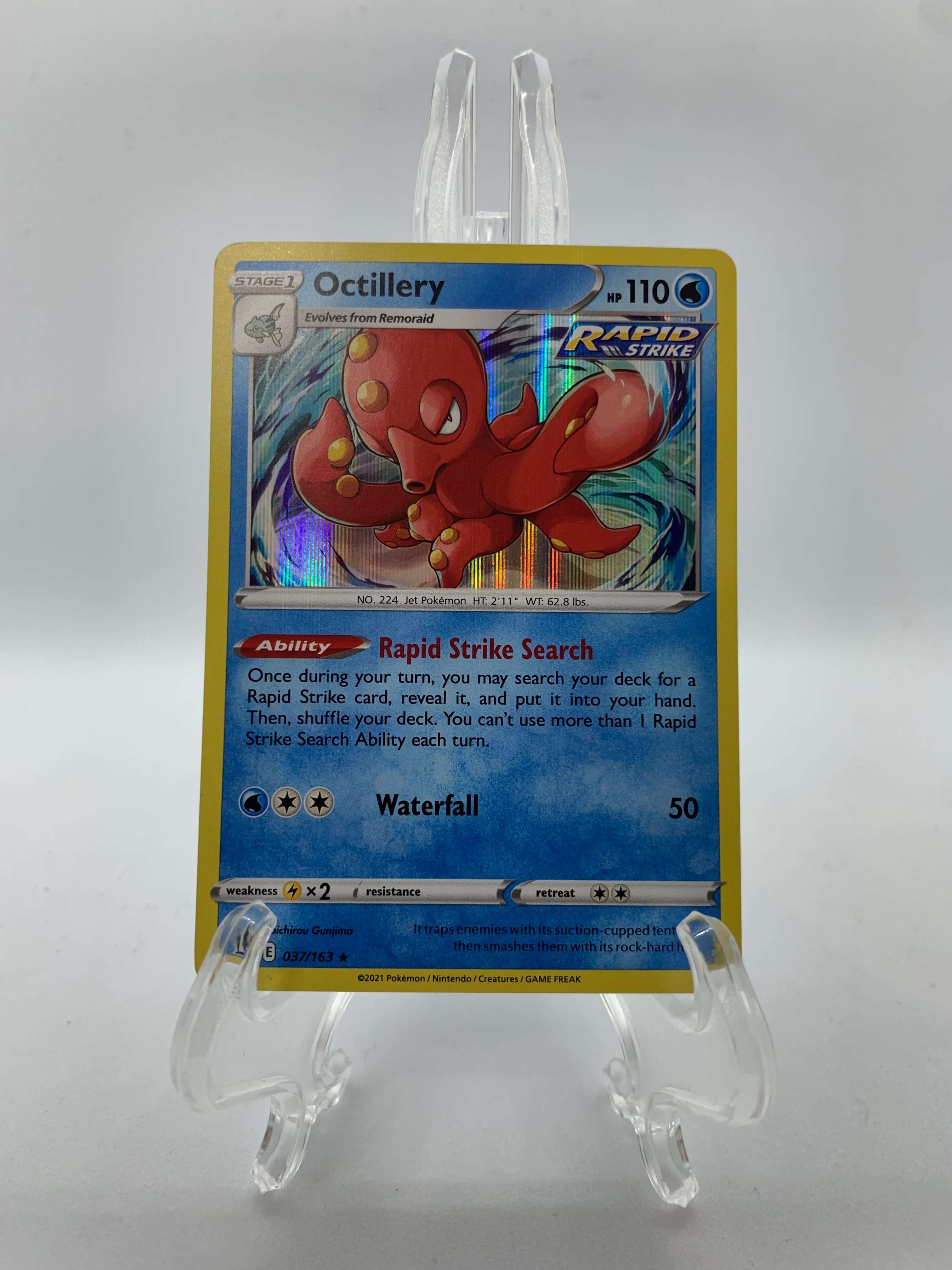 Octillery is essential in most Rapid Strike decks, including this one. Its Rapid Strike Search ability allows it to grab one Rapid Strike card from your deck and put it in your hand. Whether you need a Rapid Strike energy, an Urshifu VMAX, Tower of Waters, or any other Rapid Strike card, Octillery can get it for you!