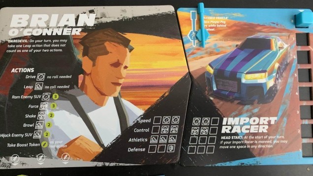 Fast & Furious: Highway Heist is a cooperative board game for two-to-four players. Each member of the team will assume the role of a hero from the movie franchise. In case you’re wondering, your crew can choose between Dom, Brian, Letty, Roman, Han, and Tej. Each character has a unique set of attributes and a unique special ability.