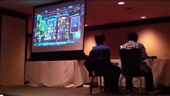 (Me [right] vs. Rikir [left] on the Toryuken main stage and live stream of Ultimate Marvel vs. Capcom 3)