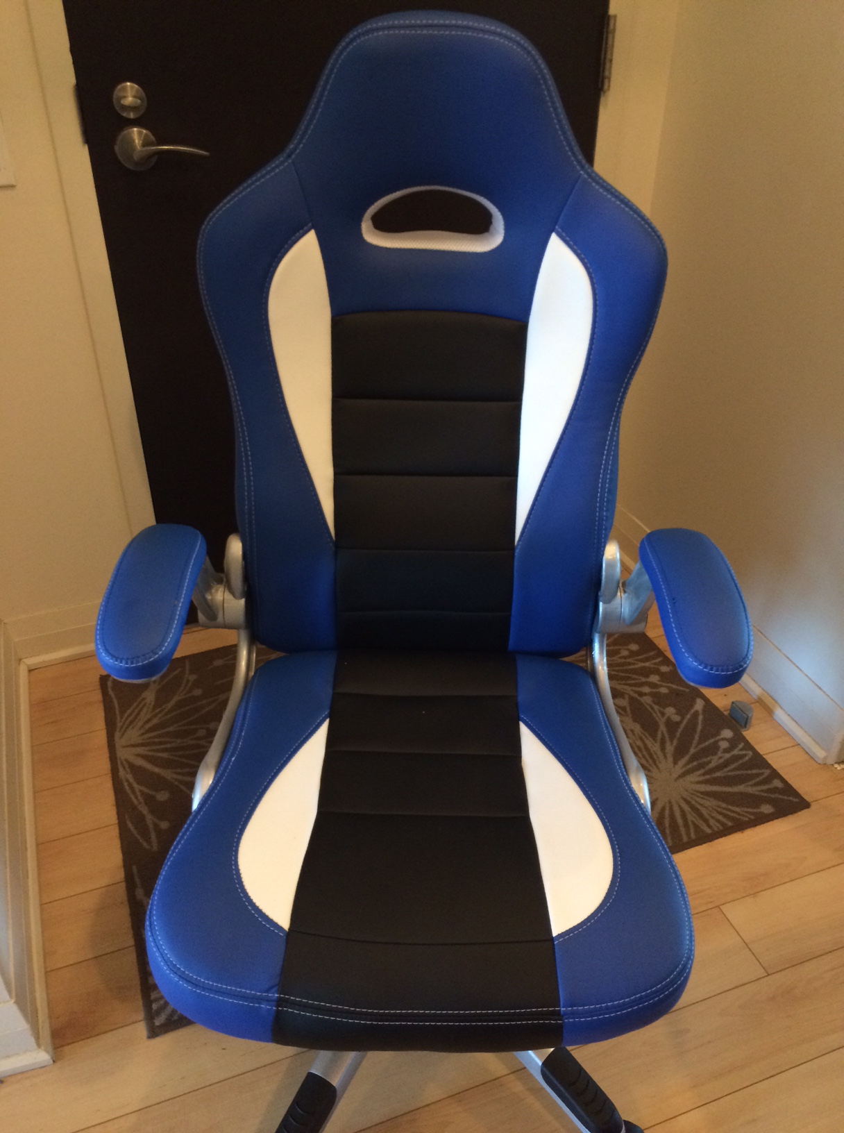 For this go-around, I decided to treat myself. Went over to Staples and treated myself to a DXRacer chair. Check it out!
